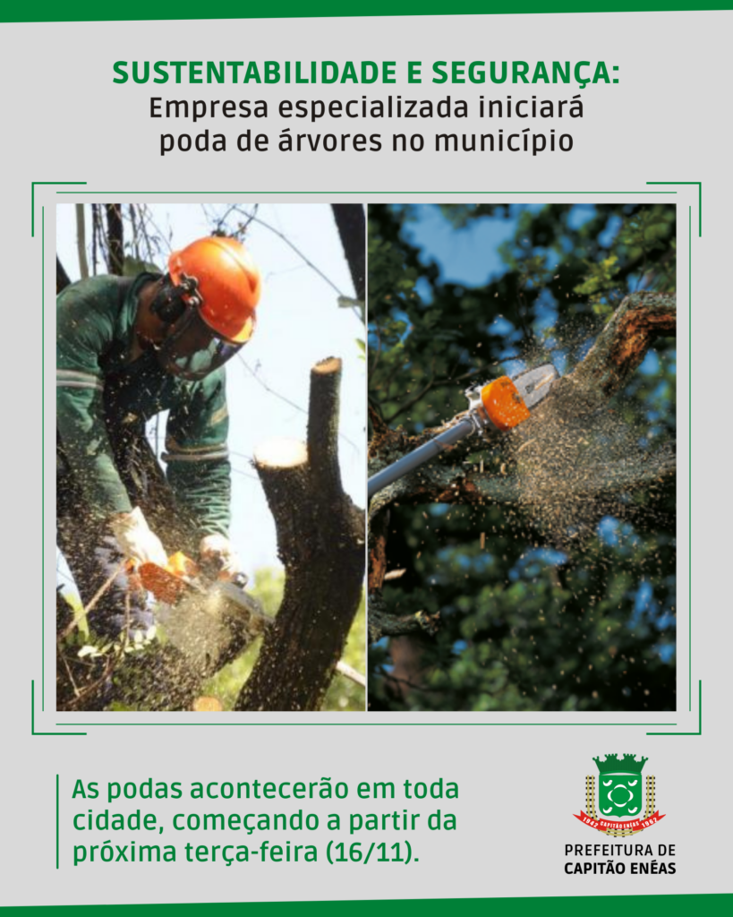 SUSTENTABILIDADE E SEGURANÇA: EMPRESA ESPECIALIZADA INICIARÁ PODA DE ÁRVORES DO MUNICÍPIO