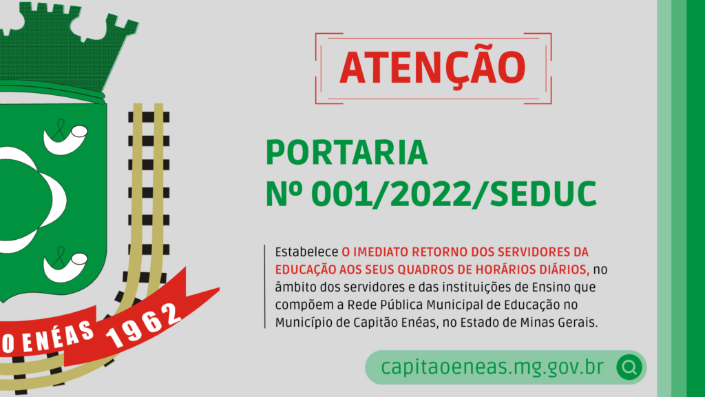 Estabelece O IMEDIATO RETORNO DOS SERVIDORES DA EDUCAÇÃO AOS SEUS QUADROS DE HORÁRIOS DIÁRIOS, no âmbito dos servidores e das instituições de Ensino que compõem a Rede Pública Municipal de Educação no Município de Capitão Enéas, no Estado de Minas Gerais.