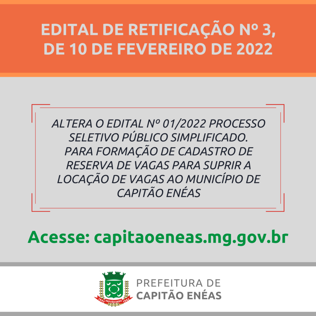 EDITAL DE RETIFICAÇÃO Nº 3, DE 10 DE FEVEREIRO DE 2022