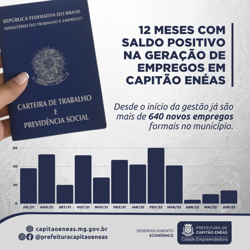 Mais um mês para Capitão Enéas comemorar dados positivos. O saldo na balança de empregados e desempregados, aferido pelo Cadastro Geral de Empregados e Desempregados (CAGED) para o mês de junho é positivo, colocando a nossa cidade numa sequência de doze meses de positividade. As ferramentas de apoio para os empregadores e trabalhadores, oferecidas pela […]