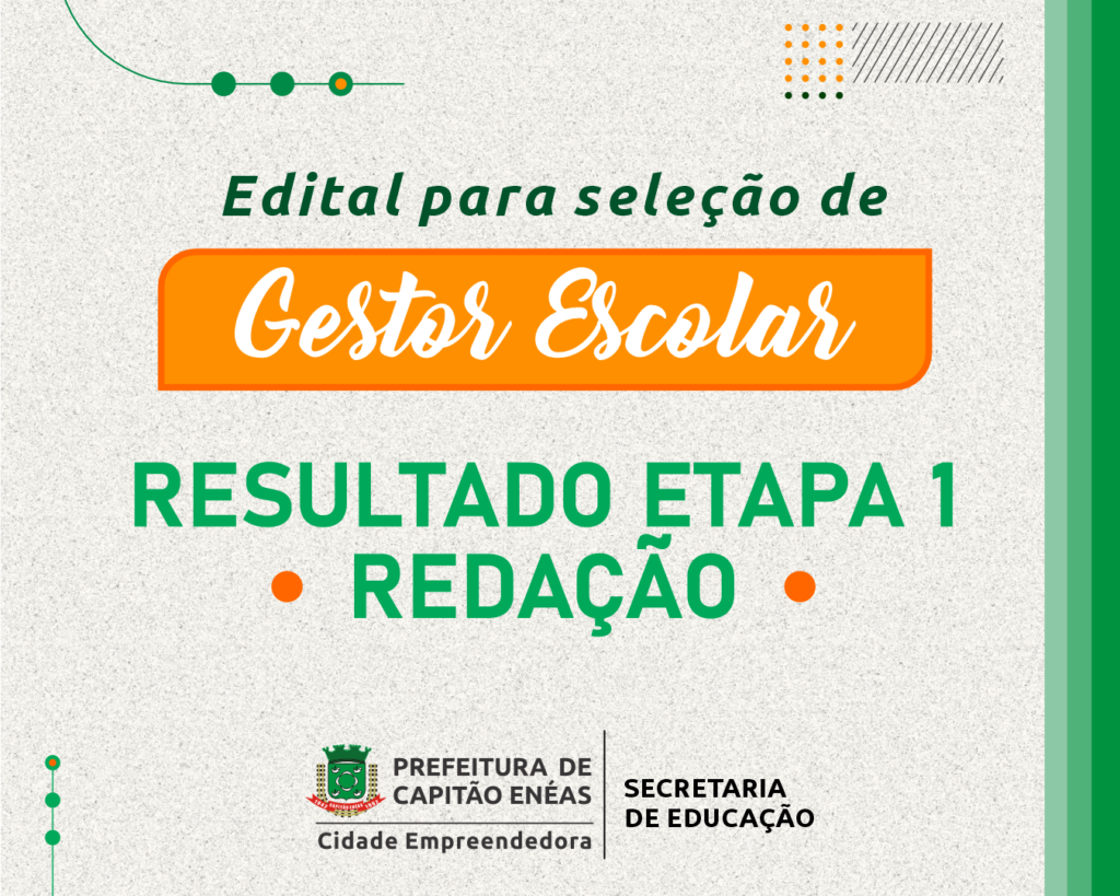 Confira abaixo o RESULTADO da primeira etapa de provas do edital de seleção de Gestores Escolares para a Rede Municipal: RETIFICAÇÃO Nº03/2023 – EDITAL GESTOR ESCOLAR Confira abaixo o aditivo Nº03/2023 que retifica o edital de seleção de Gestores Escolares para a Rede Municipal: Faça download do arquivo aqui: RESULTADO_REDAÇÃO