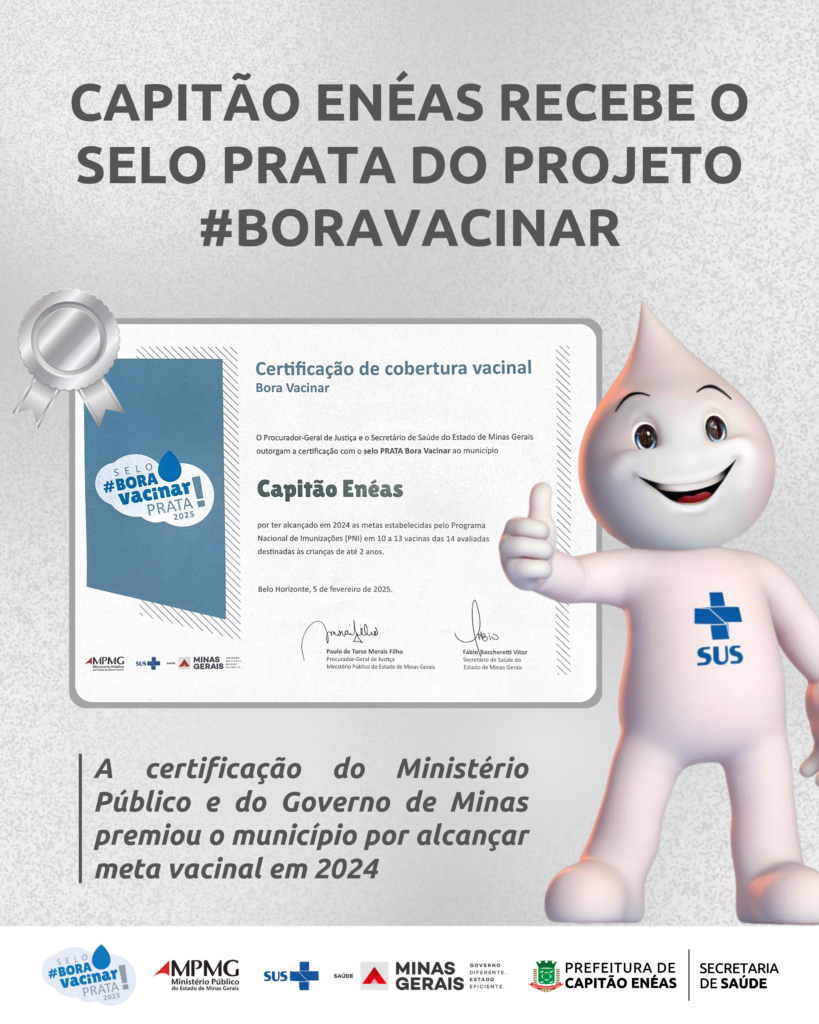 A Prefeitura de Capitão Enéas tem a satisfação de anunciar que o município foi reconhecido com o Selo Prata do projeto #BoraVacinar, uma iniciativa do Ministério Público de Minas Gerais (MPMG) e do Governo do Estado de Minas Gerais. Esse reconhecimento demonstra o compromisso da administração municipal com a saúde pública e a proteção da […]