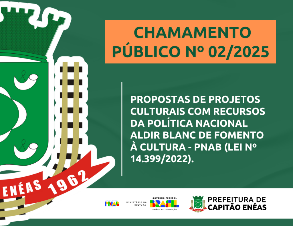 PROPOSTAS DE PROJETOS CULTURAIS COM RECURSOS DA POLÍTICA NACIONAL ALDIR BLANC DE FOMENTO À CULTURA – PNAB (LEI Nº 14.399/2022). Edital – Chamamento Público 002/2025 – Aldir Blanc Resultado