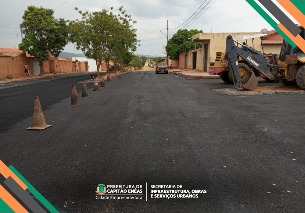 Mais uma obra de pavimentação asfáltica está sendo realizada pela Prefeitura de Capitão Enéas, desta vez na Avenida Pio Mineiro em direção ao bairro Morada do Sol.